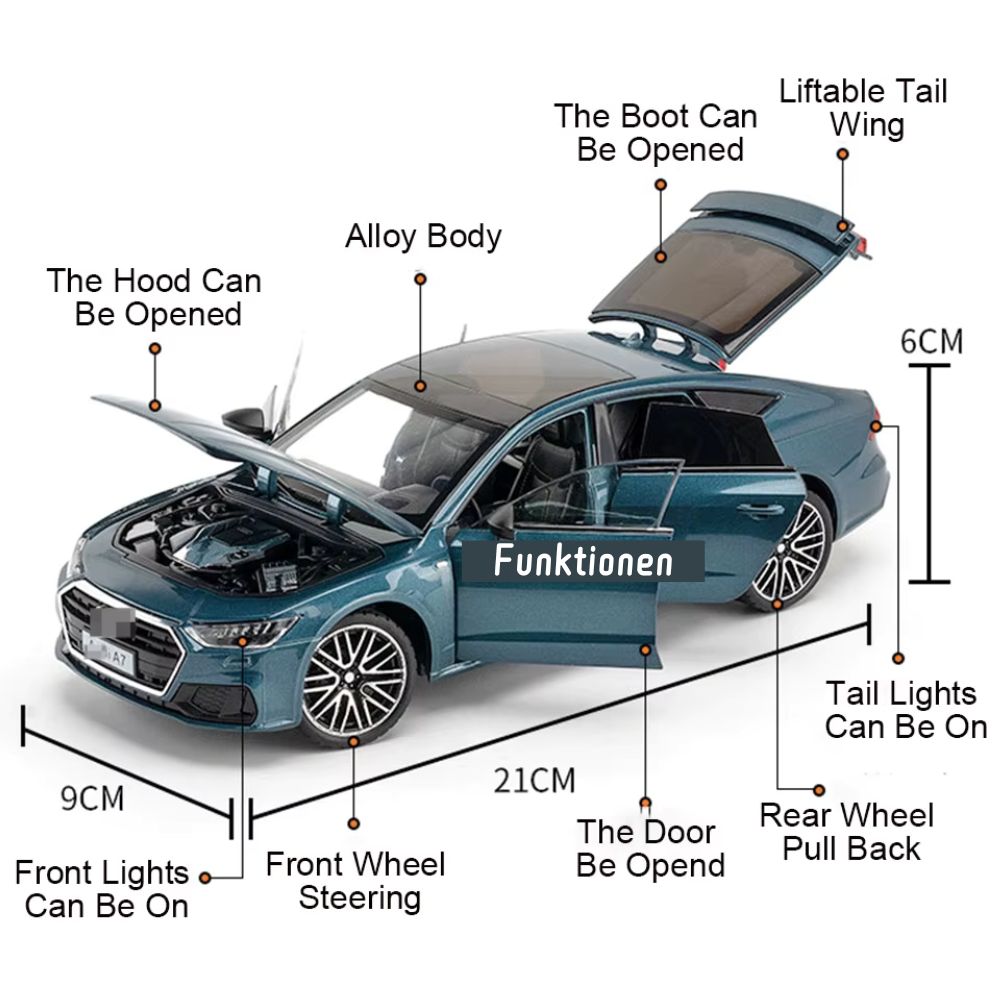 Mit seiner präzisen Detailtreue, den beweglichen Teilen und der interaktiven Funktionalität ist das Audi A7 Modellauto ein Muss für Autoenthusiasten jeden Alters!