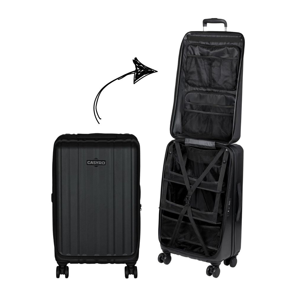 CASYRO Hartschalen Reisekoffer 'M' zum Aufklappen: Nutzbar wie Kleiderschrank | Schwarz