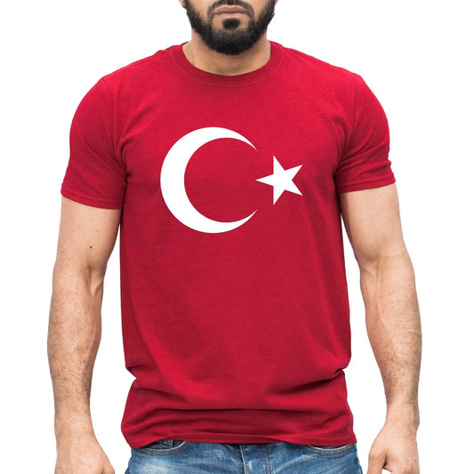 TÜRKiYE Flag Short Sleeve Casual T-Shirt in Red | Crescent-Star Design: EM2024 Streetwear