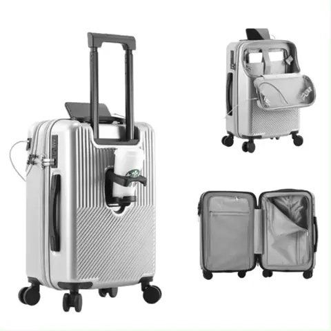 Multifunctional Trolley Suitcase with Front Opening | USB Port, Cup Holder, Hand Luggage & Travel Suitcase