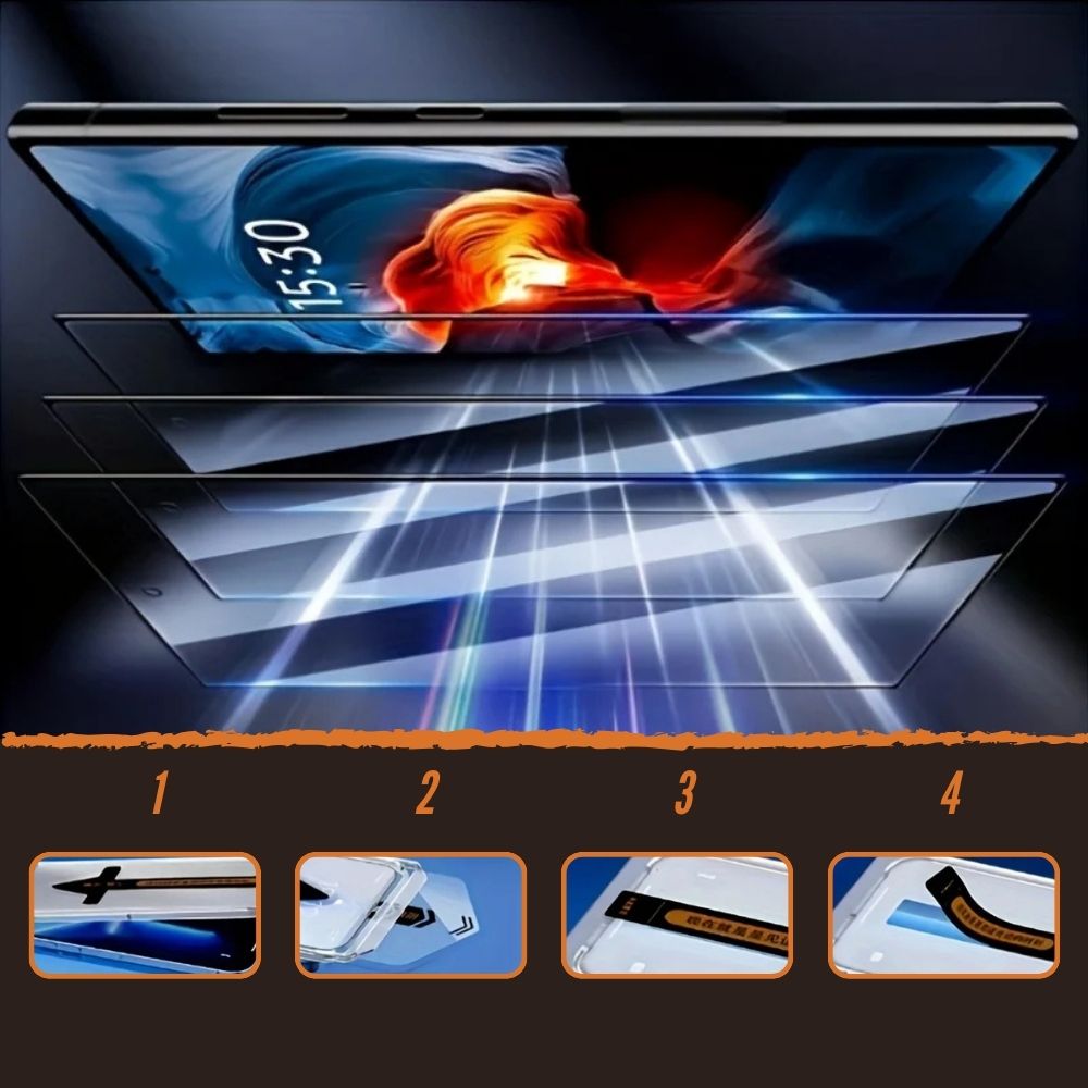 Protect your smartphone with this innovative 9H Auto-Dust-Removal tempered glass - for lightning-fast, dust-free installation in just three steps.