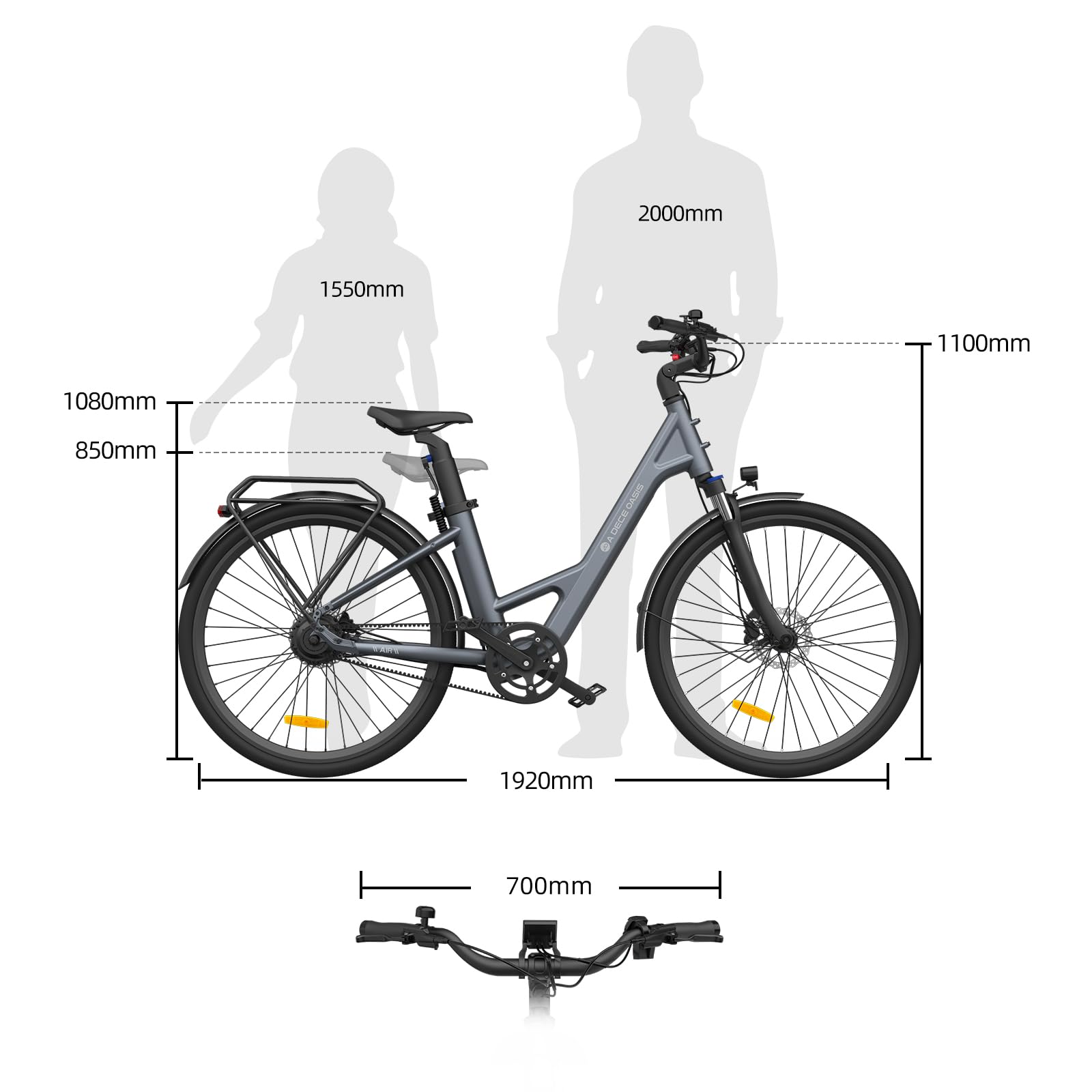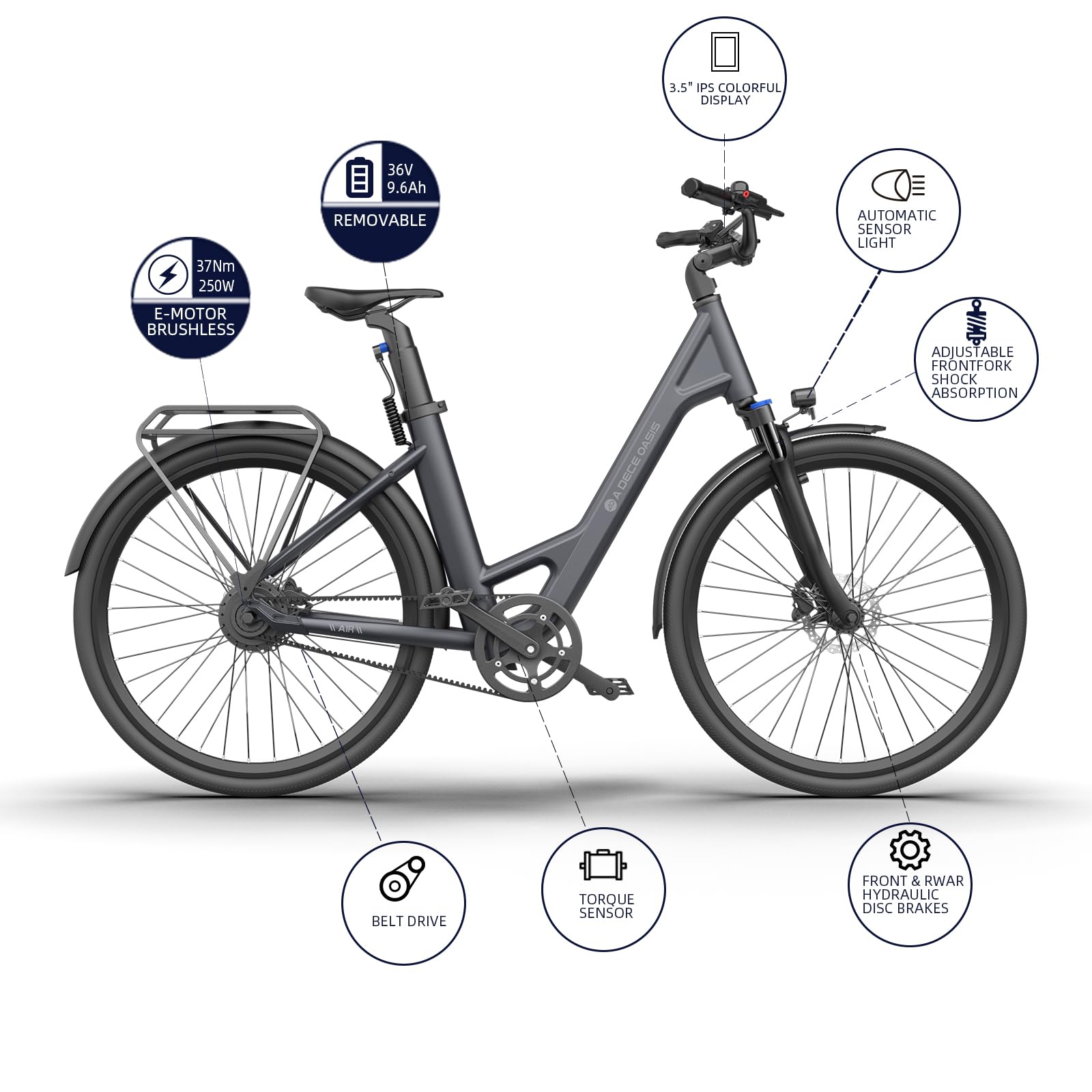 ADO Air 28 E-Bike (2 pieces): 345.00 Wh battery, torque sensor, belt drive, APP (Gray)