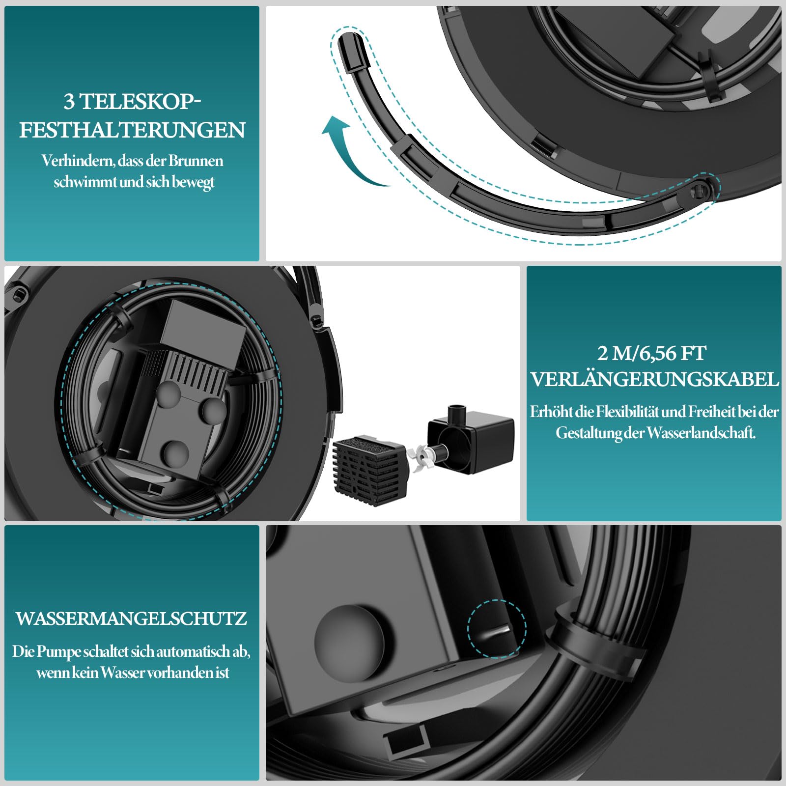 Automatic protection : dry protection, filter and sleep mode in case of lack of light