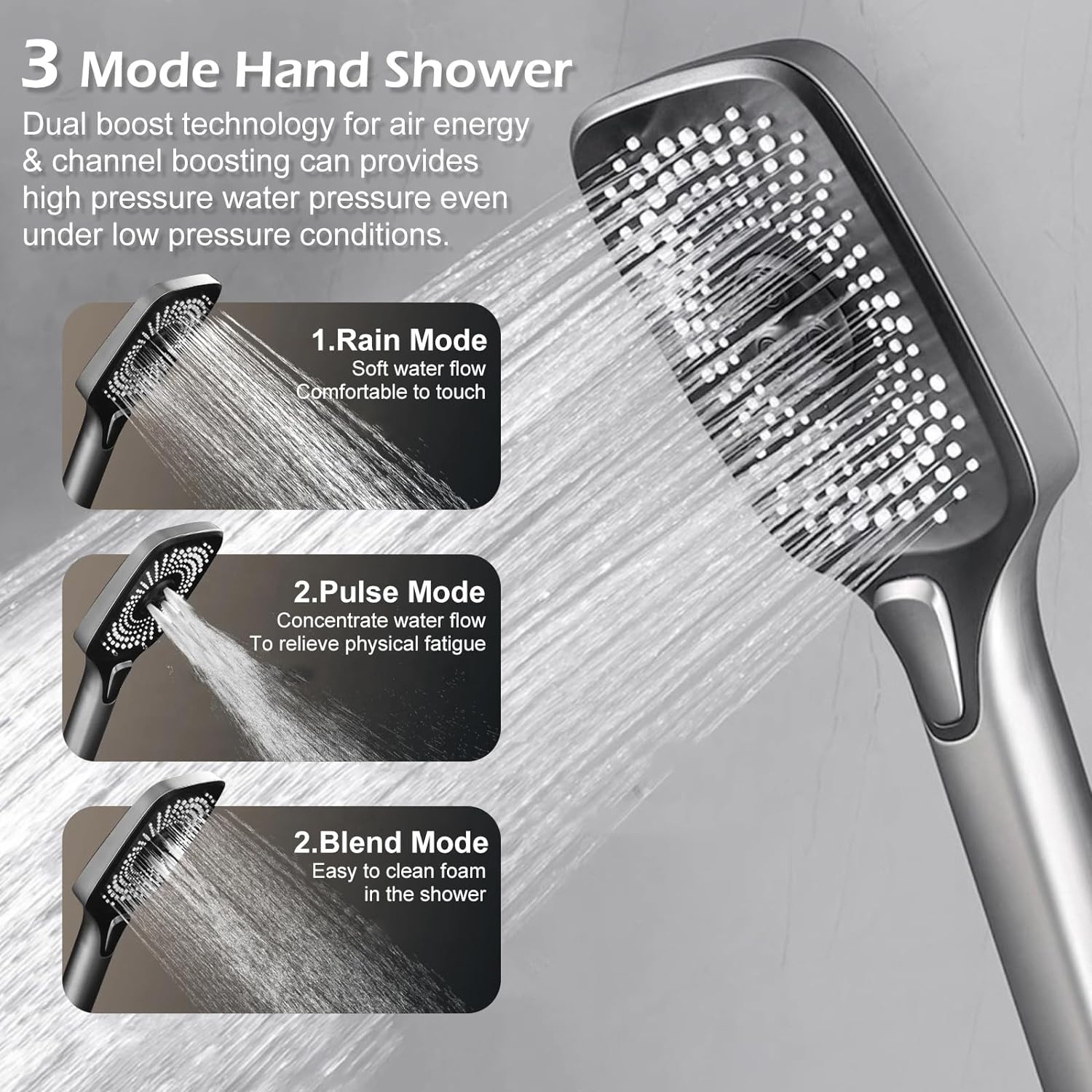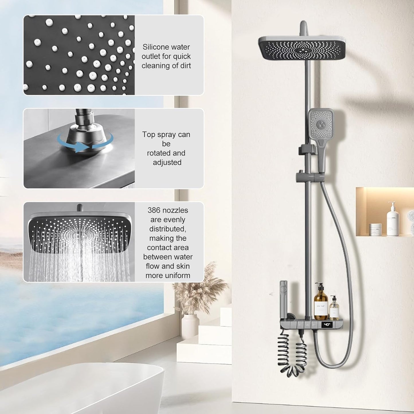 Adjustability: The shower column and handheld shower are adjustable in height and angle, allowing them to be customized for different heights and needs. The shower head can rotate 360 degrees to ensure even water flow.