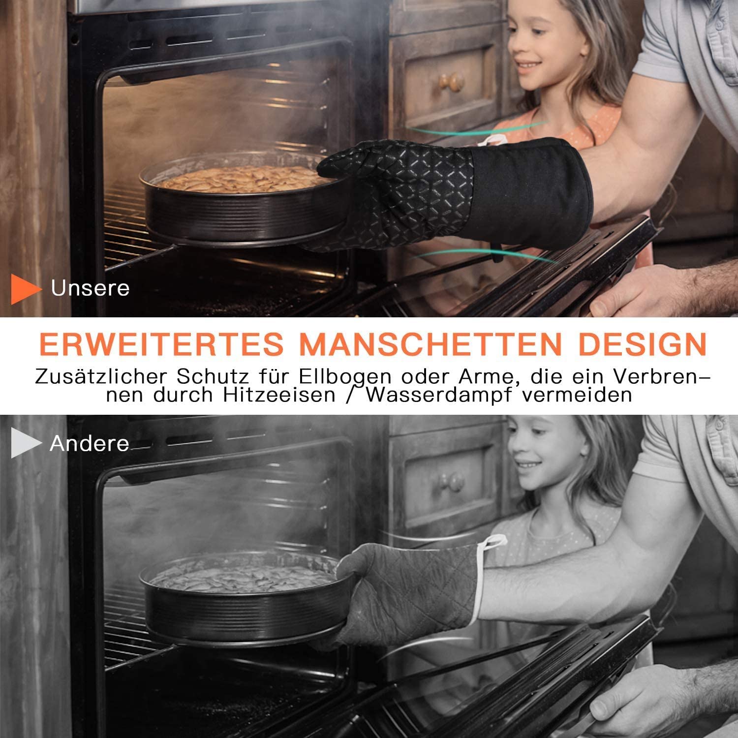 Heat Resistance –- The oven gloves are made of silicone and heat-resistant cotton fabric, ideal for handling ovens, stovetops and pans.