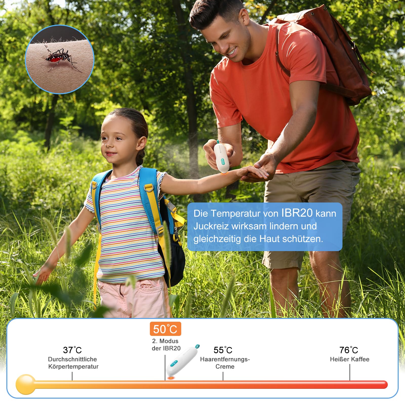 Fast itching relief: Heat denatures proteins and inhibits histamine release , effectively reducing discomfort and scratching.