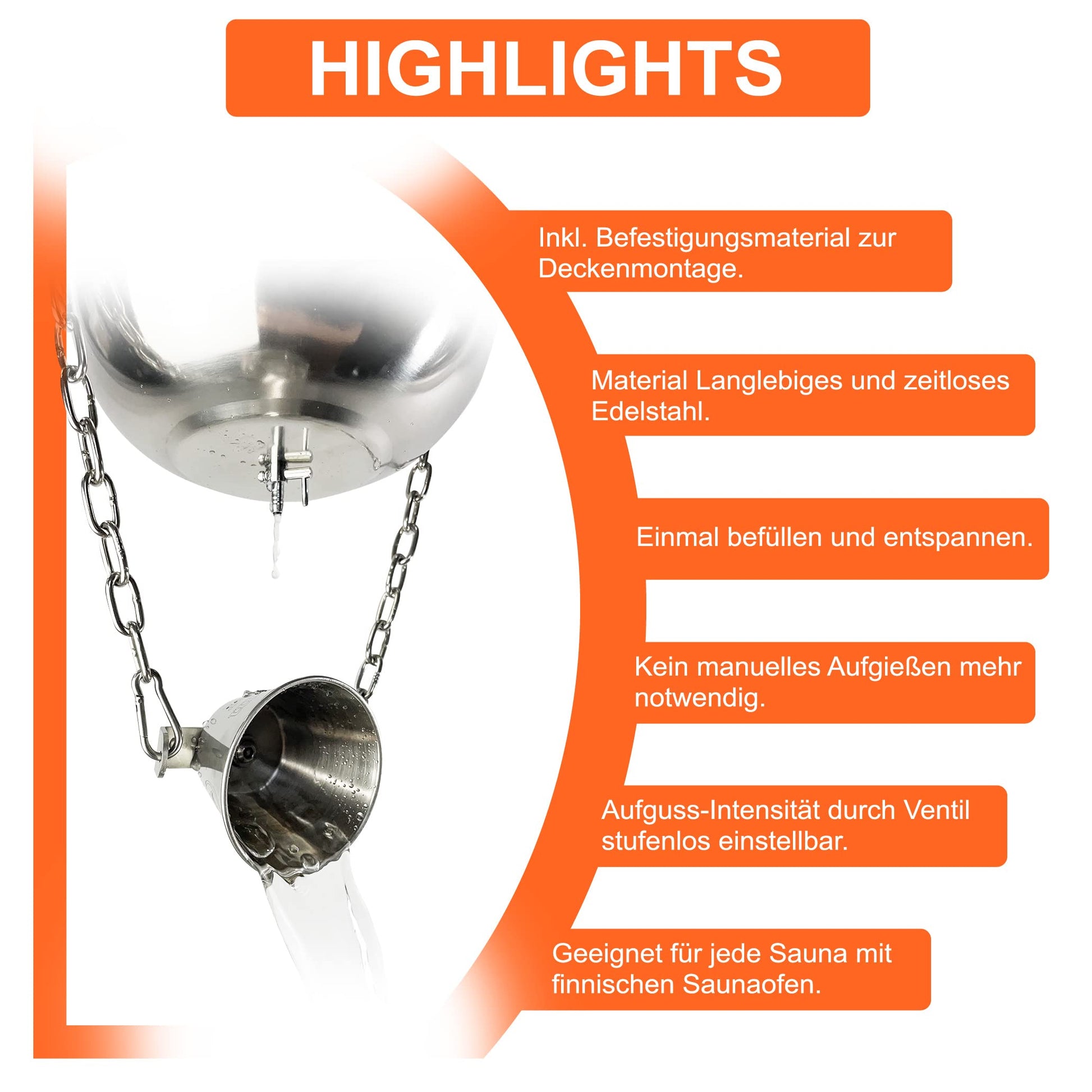 Complete set for easy installation - including stainless steel hanging chain & screw hook for every home sauna