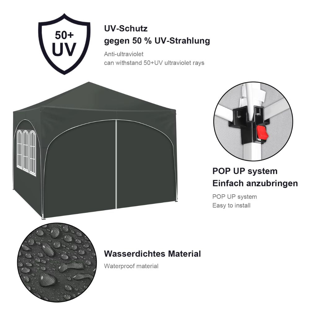 WOLTU 3x3m folding gazebo with 4 side walls | UV protection - height adjustable - water-repellent (including carrying bag)