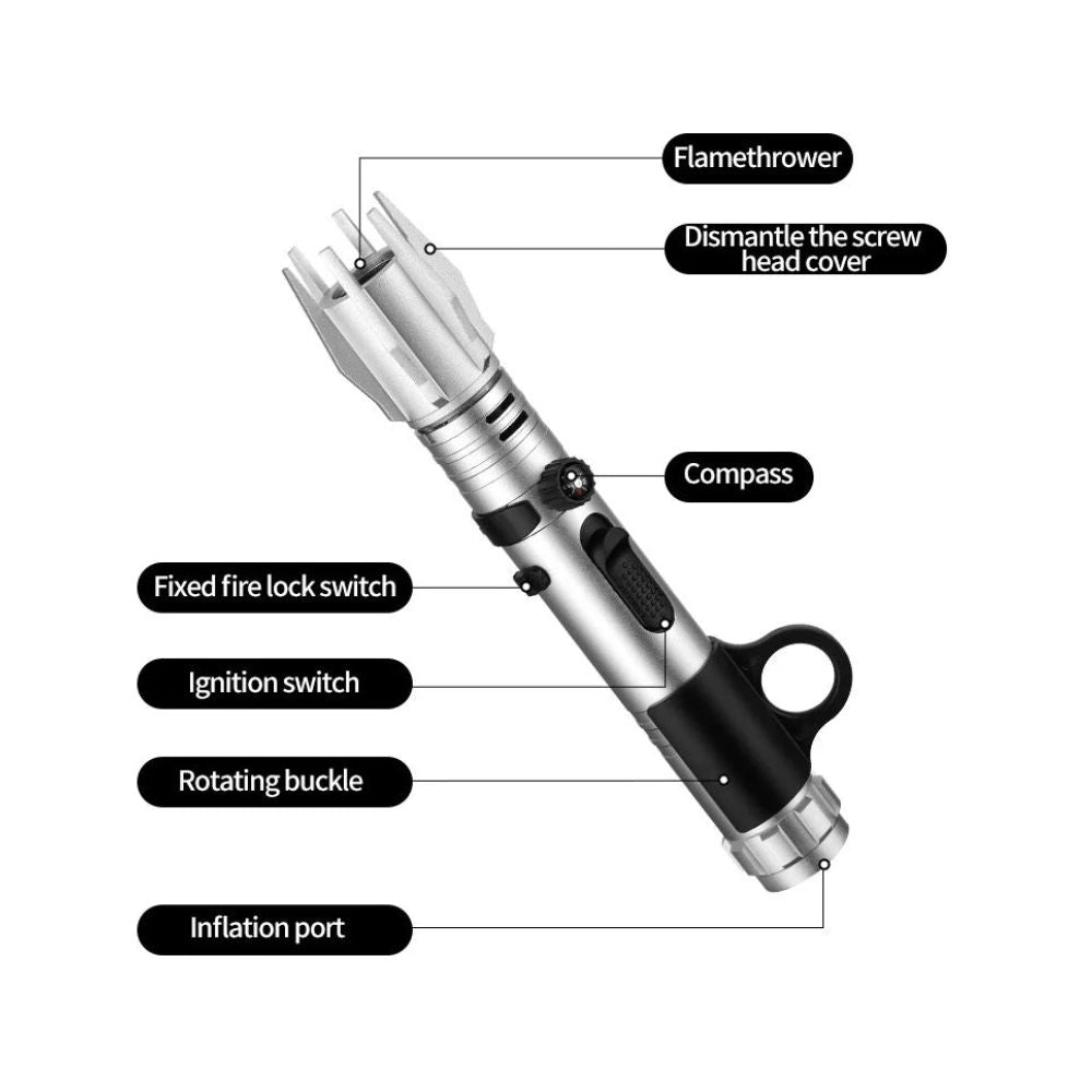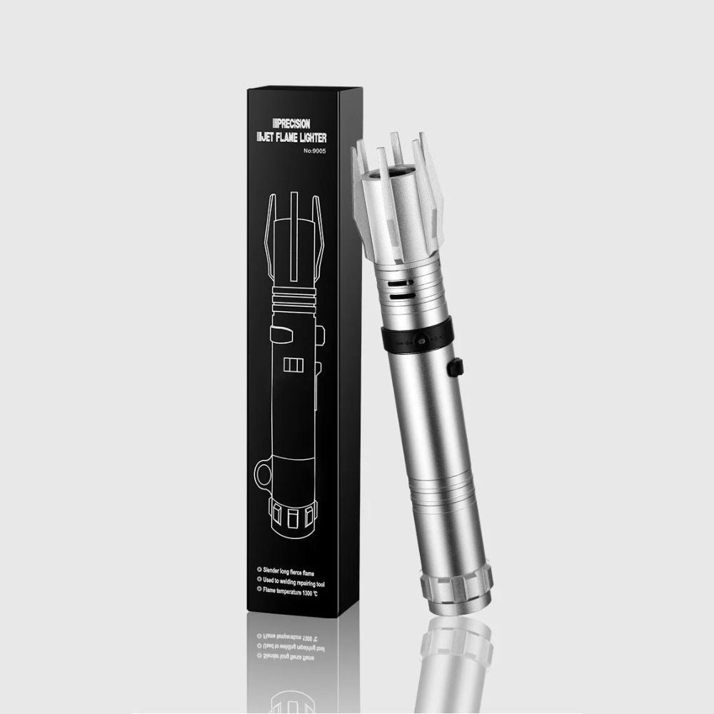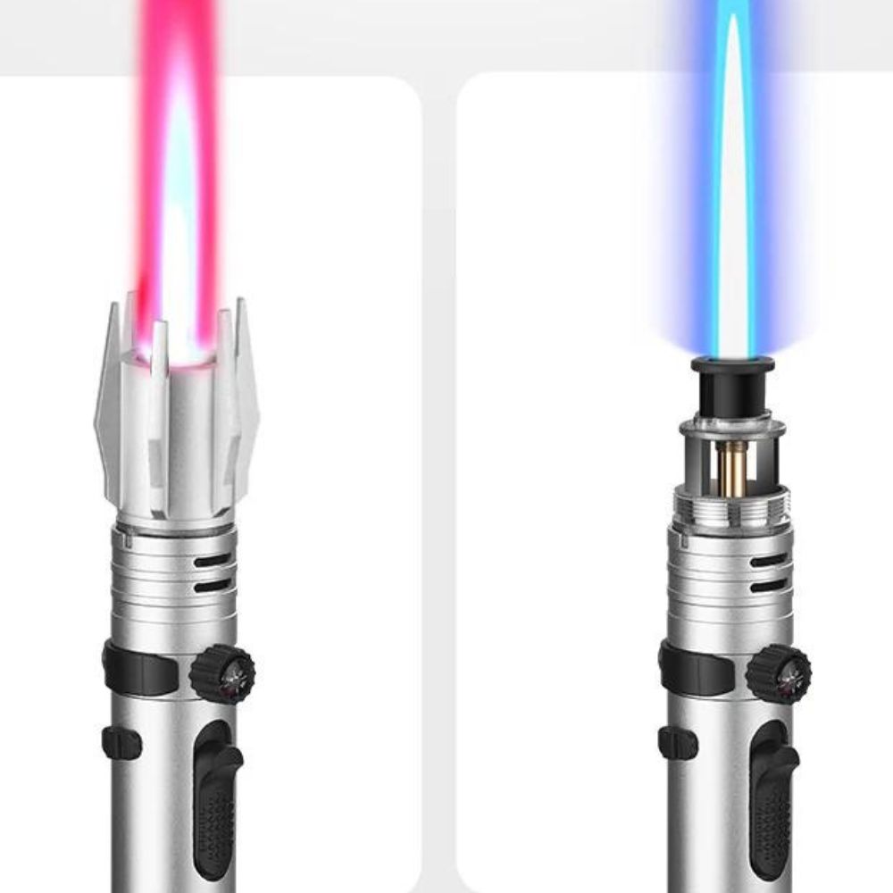 Dieses kraftvolle und stilvolle Feuerzeug ähnelt einem echten Lichtschwert und bringt starke, windfeste Strahlflammen hervor, die im Handumdrehen Feuer entzünden - egal ob beim Camping, Grillen oder für Lagerfeuer.