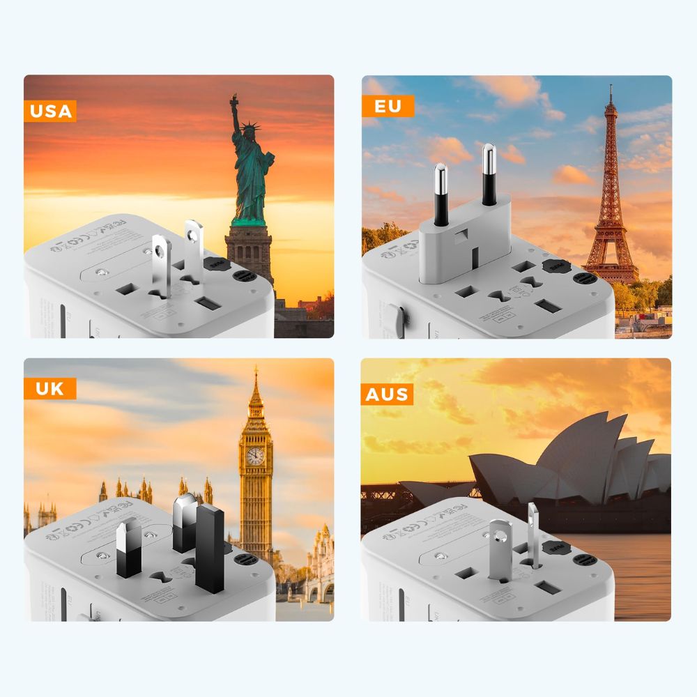 All-in-One Lösung: Mit EU/UK/US/AU-Steckern ideal für Reisen in über 150 Länder (z. B. Europa, USA, UK, Australien, Asien)
