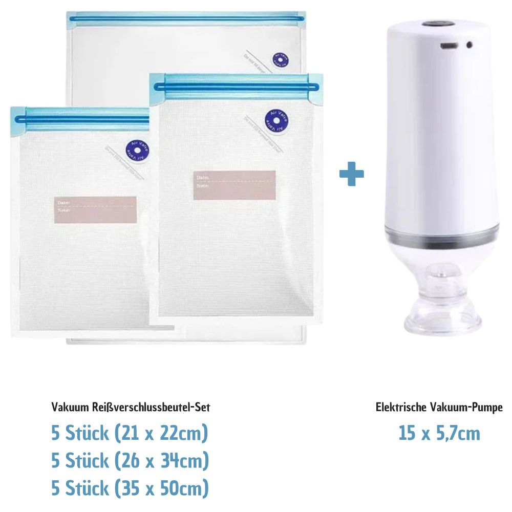 Ensemble de sacs sous vide zippés avec pompe électrique | Rechargeable par USB, sans BPA pour plus de fraîcheur