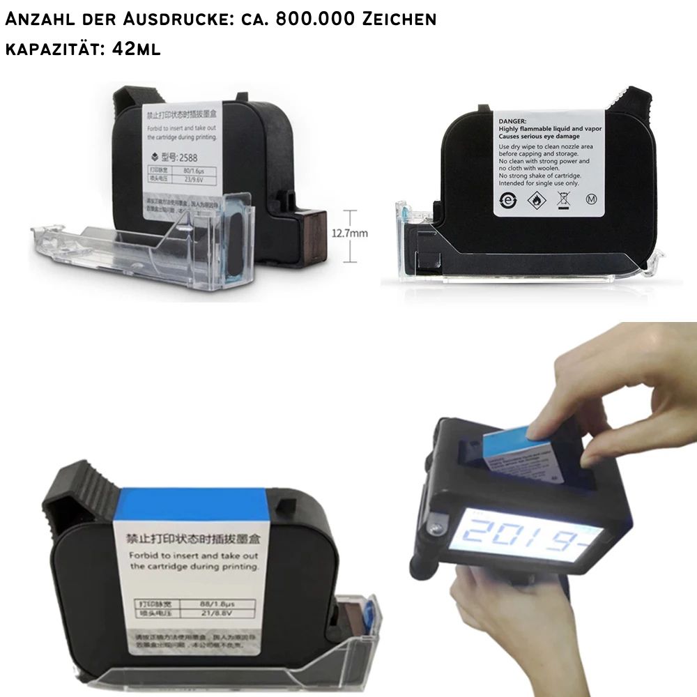 Imprimante à jet d'encre tactile portable (4,5 pouces) avec 5 cartouches | Hauteur d'impression 2-12,7 mm, 600 DPI, 2 800 mAh