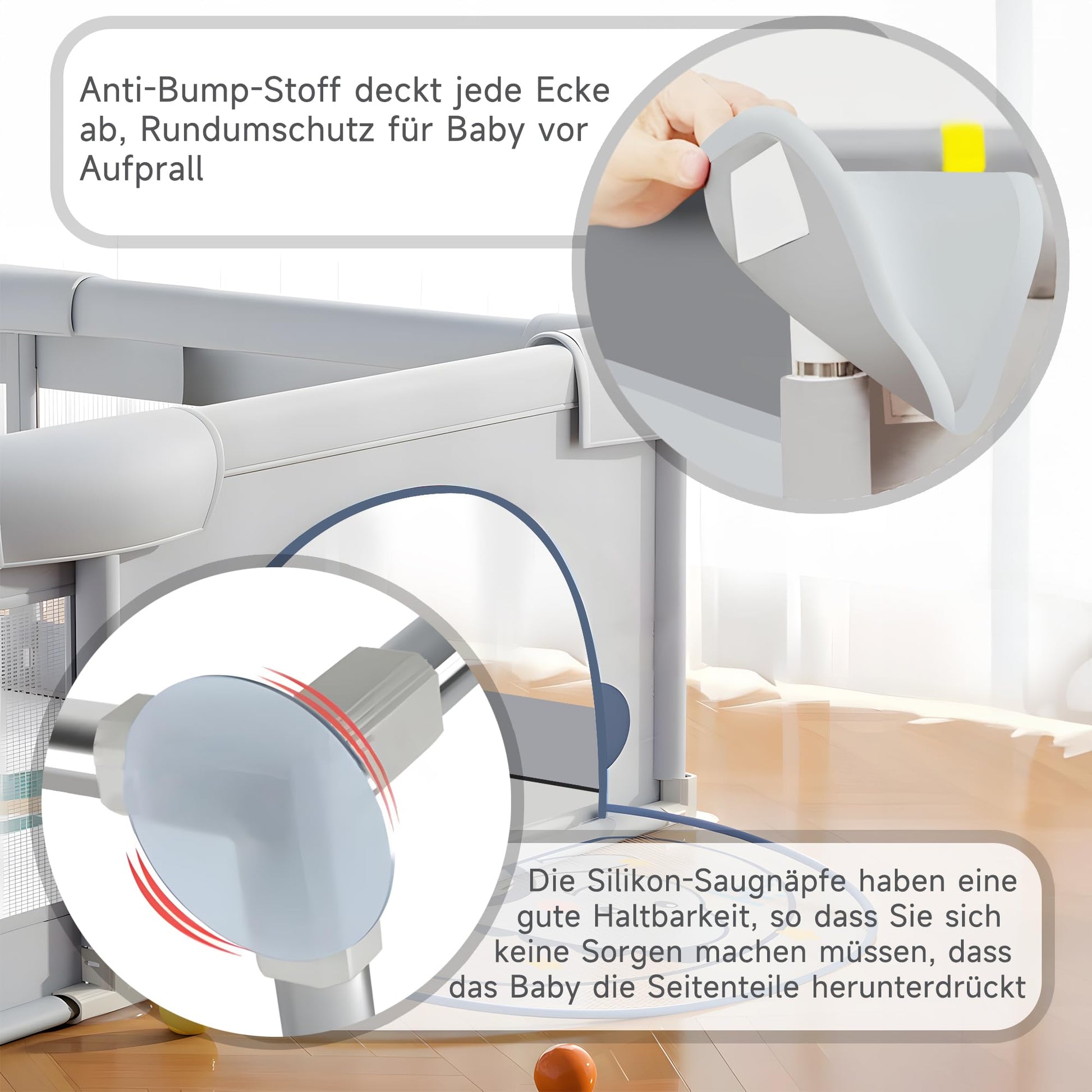 Laufgitter Baby mit rutschfestem Boden (200x180cm) inkl. 60 Seebälle, 4 Griffe, Playpen, Aufbewahrungstasche