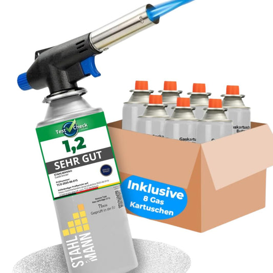STAHLMANN® Gasbrenner mit Kartusche (8x227g): Flambierbrenner max. 1300°C Temperatur