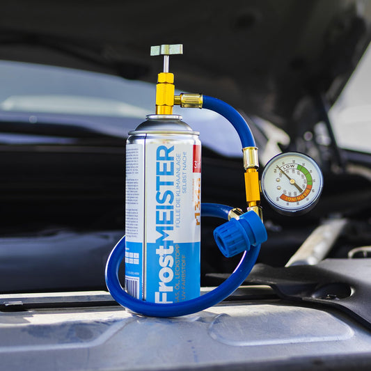 FrostMEISTER 3-in-1 Auto-Klimaanlage Nachfüllset für R134a (2x 400ml Dose & Schlauch mit Manometer)
