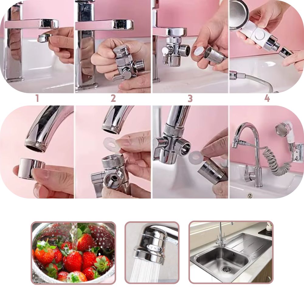 Vielseitig einsetzbar: Ideal für Küchen, Badezimmer oder als flexibles Friseur-Set. Optimieren Sie Ihre täglichen Reinigungsroutinen mit diesem praktischen, leicht installierbaren Adapter-Set!