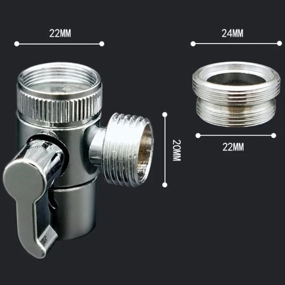 - Adapterstecker mit 24 mm Außengewinde und 22 mm Innengewinde, passend für runde Wasserhähne mit M24-Innengewinde oder M22-Außengewinde.