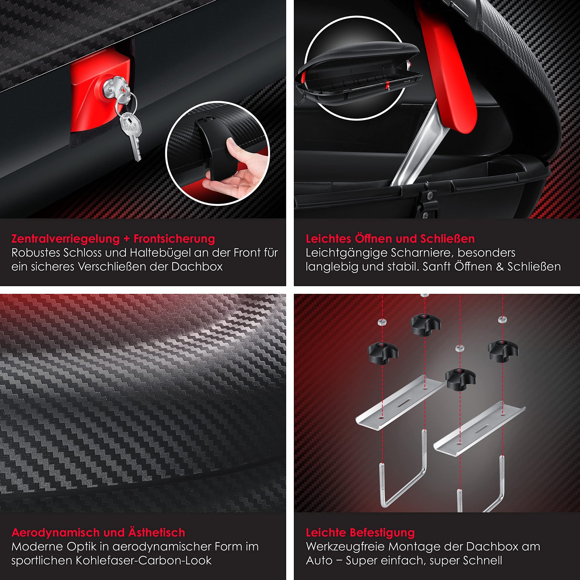KESSER® Universal Auto Dachbox: Kfz Dachkoffer inkl. Zubehör | Abschließbar mit Carbon-Optik (320L)