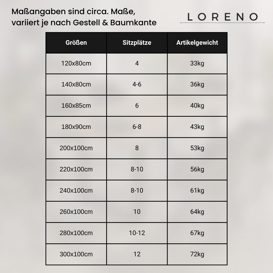 Individuelle Größenwahl: Wählen Sie aus einer Vielzahl an Größen - von 120x80cm bis hin zu 300x100cm - für kleine Essbereiche bis hin zu großzügigen Räumen.