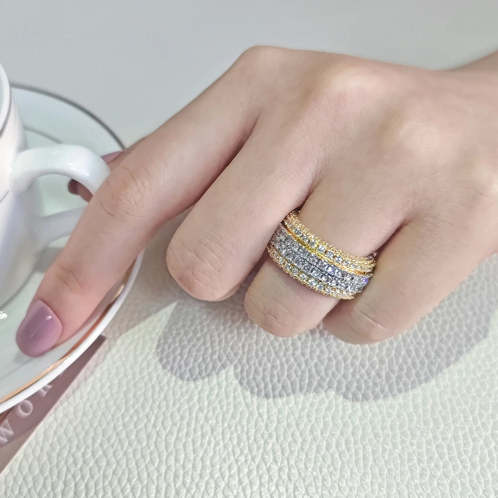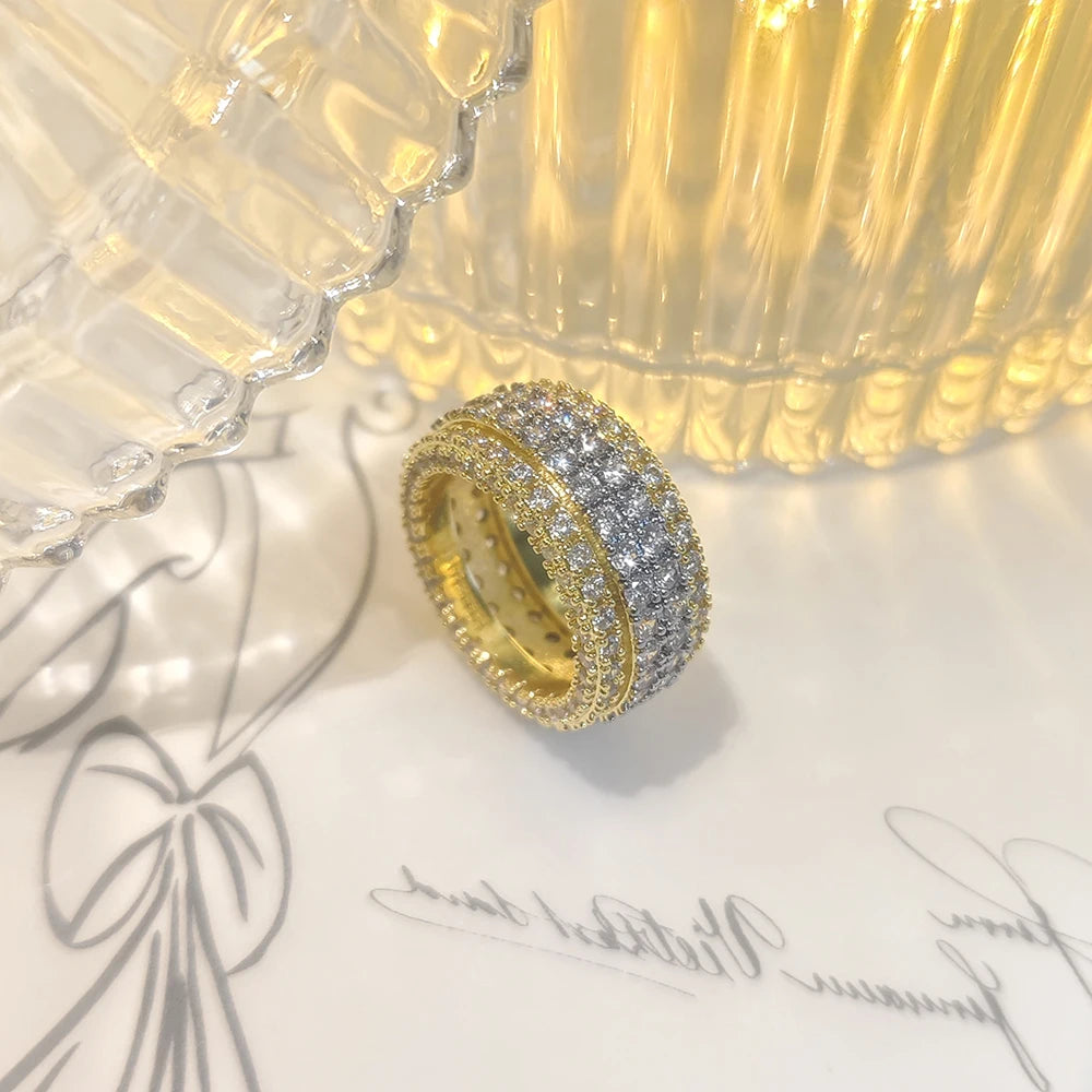 Luxus goldplattierter glitzernder Eternity-Ring mit Zirkonia | Geschenk für Anlässe 2