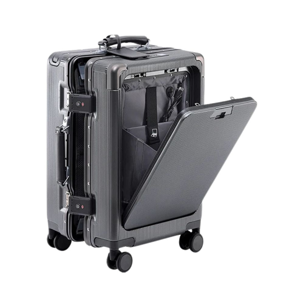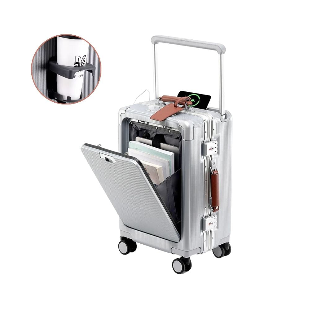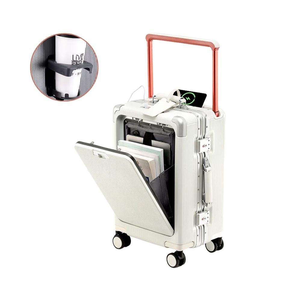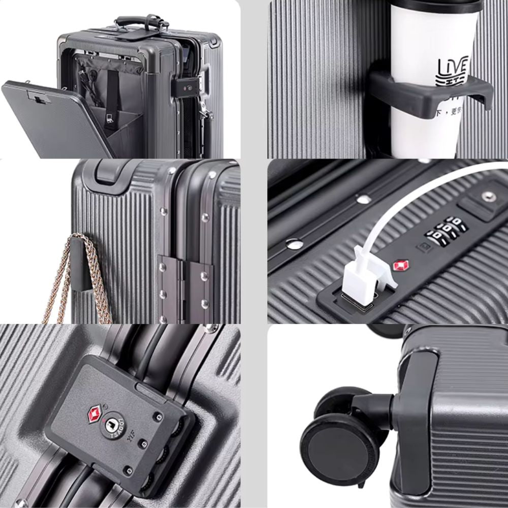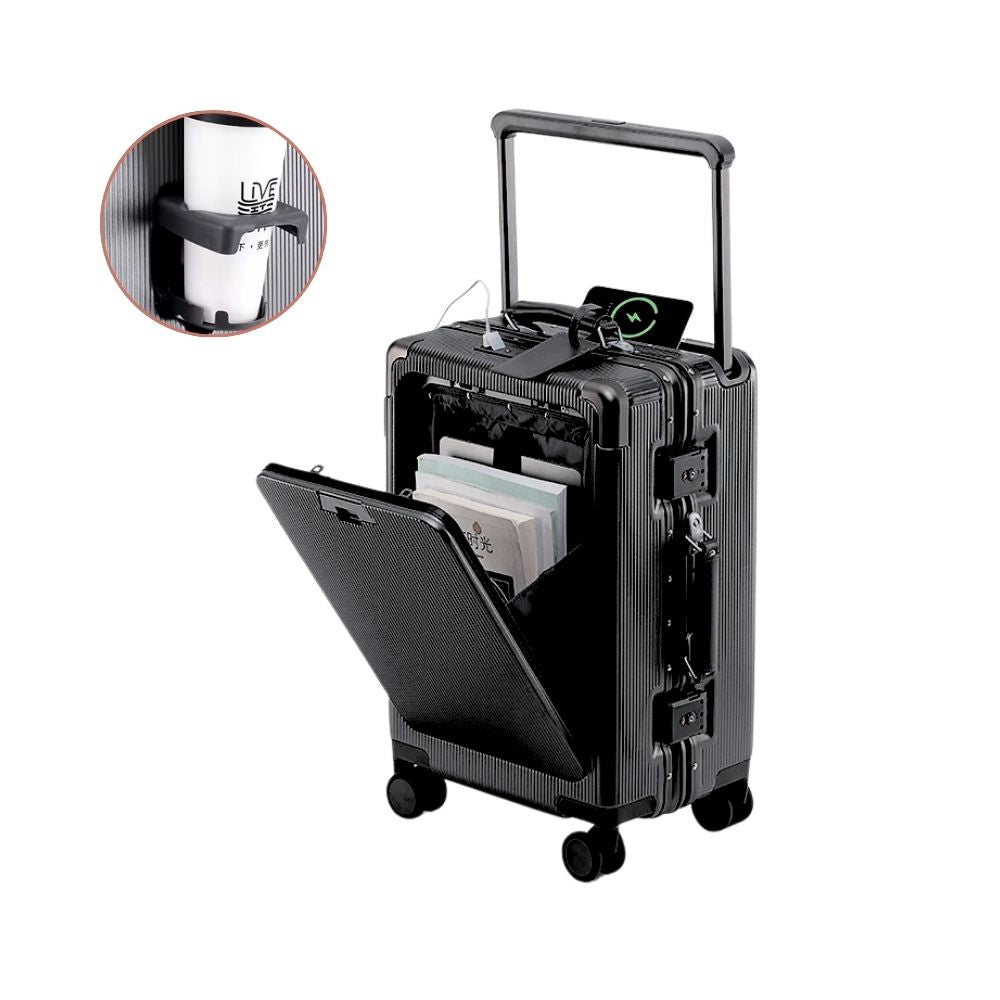Multifunktional Trolley Koffer mit Frontöffnung | USB-Anschluss, Becherhalter, Handgepäck & Reisekoffer