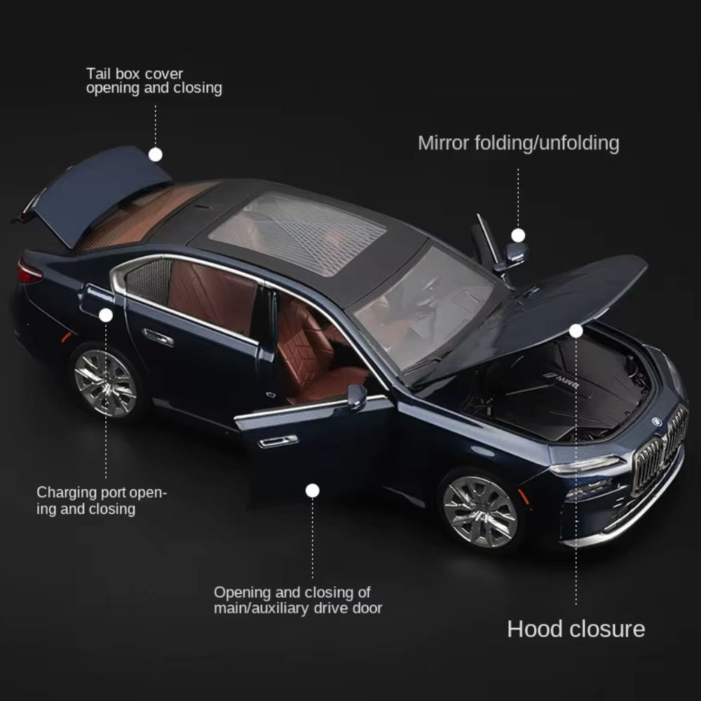 Erleben Sie die perfekte Kombination aus Luxus und Detailtreue mit dem BMW i7 (G70) Modellauto im Maßstab 1:24.