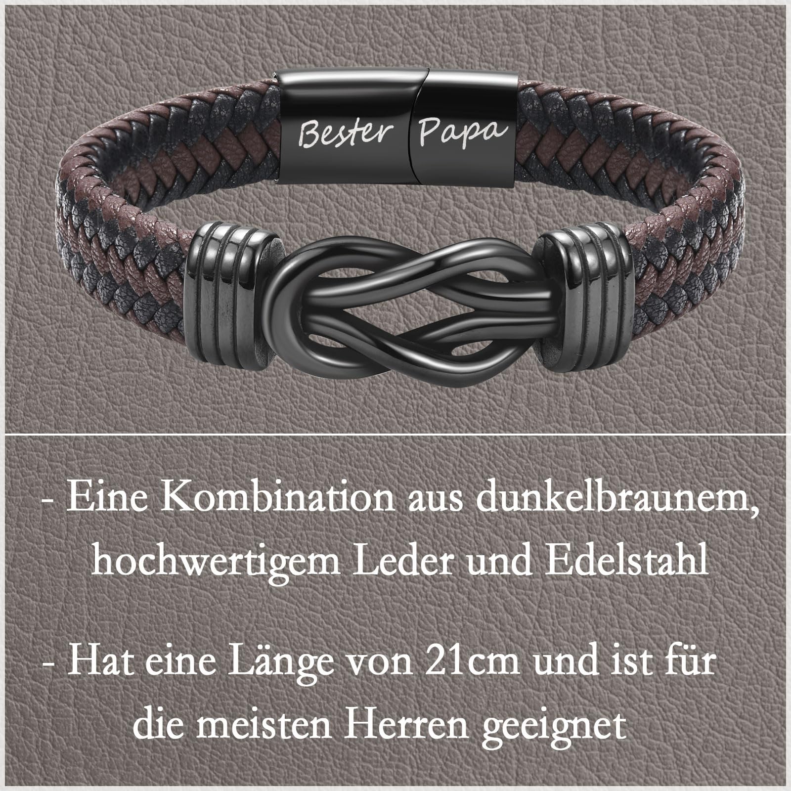 BONUS PAPA Lederarmband mit Gravur für Vater-Geschenke zum Vatertag, Geburtstag