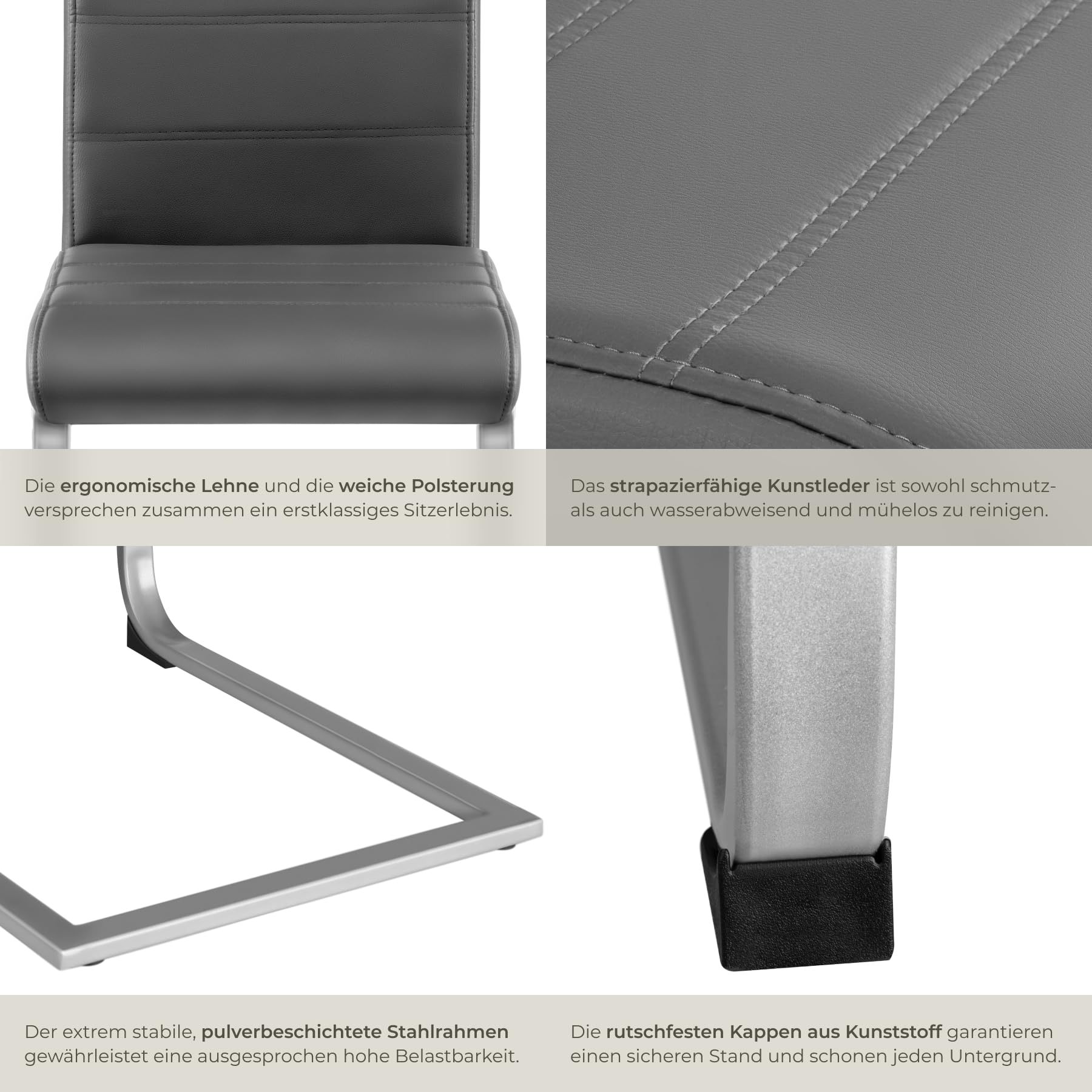 tectake® 2er Set Esszimmerstühle | Modern, bequem und vielseitig einsetzbar (Grau)