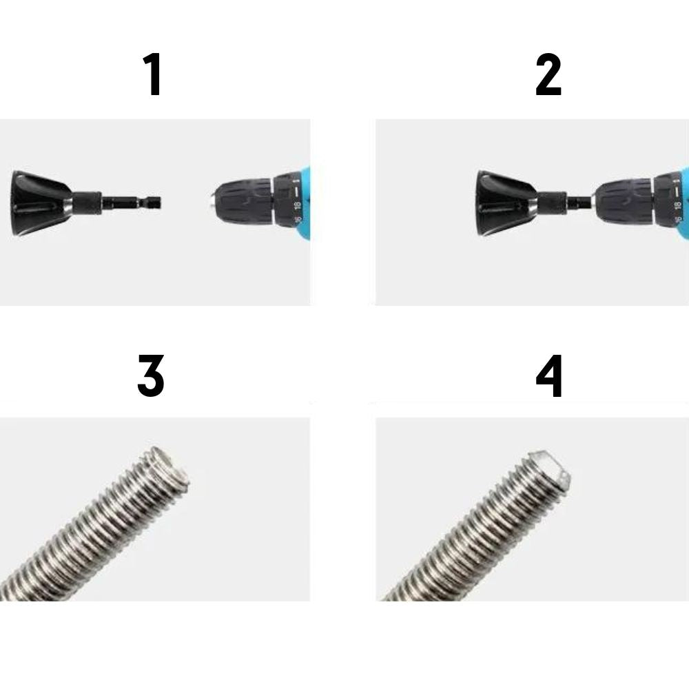 Sicher und effizient, dieses Werkzeug rasiert leicht die Außenkanten einer abgeflachten Schraube ab. Einfach an einer Bohrmaschine zu befestigen und sanften Druck auf den Schraubenkopf auszuüben. Dies vereinfacht den Reparaturprozess und spart Ihnen Zeit und Geld für den Ersatz teurer Hardware.