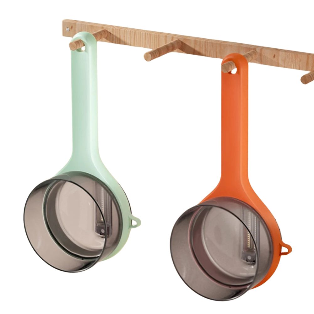 Entdecken Sie den doppelseitigen Multifunktionalen Schäler mit Aufbewahrungsbox, der das Schälen von Obst und Gemüse zum Kinderspiel macht.