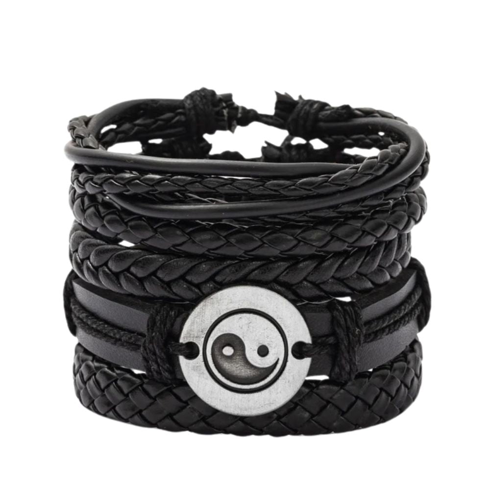 Entdecke das perfekte Accessoire für Männer, die ihren eigenen Stil leben! Dieses 4-teilige Set aus geflochtenem Leder vereint maskuline Eleganz mit einem Hauch von Ethno-Vintage-Charme.