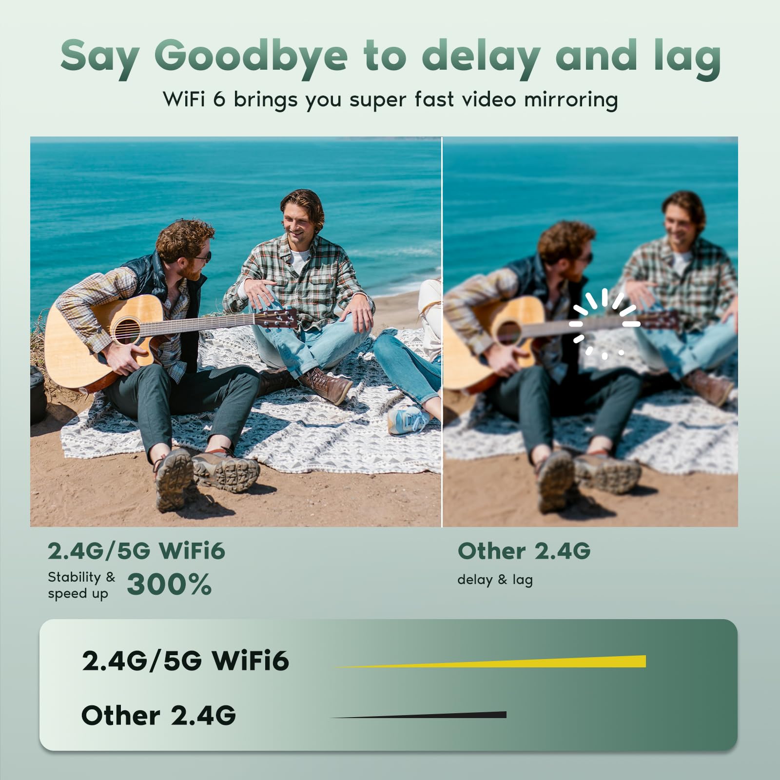 - WiFi 6 & Zwei-Wege-Bluetooth: Ultraschnelle drahtlose Verbindungen für Streaming und flexible Audiowiedergabe über externe Geräte oder den Beamer selbst.