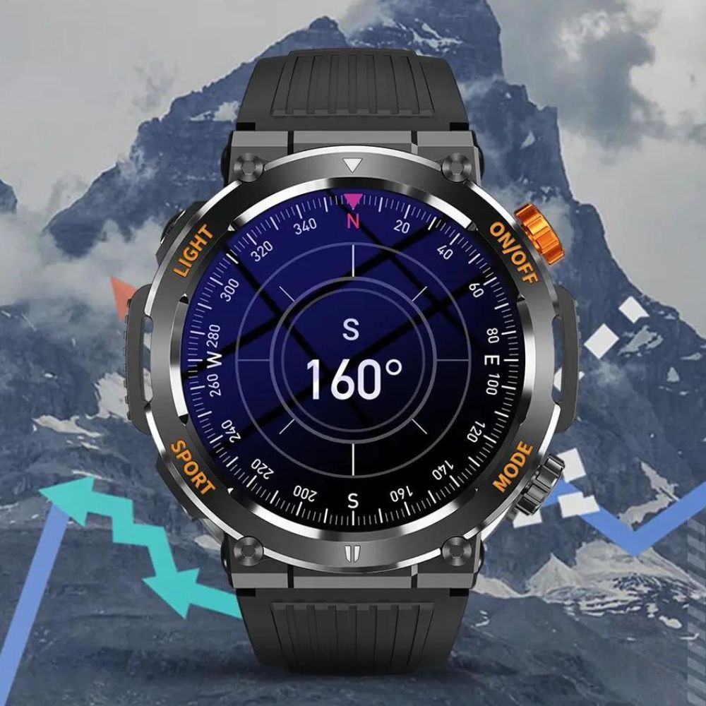 Erleben Sie 100 verschiedene Sportmodi, militärische Robustheit, Flash LED Licht, Kompass und vieles mehr mit der COLMI V68 Smartwatch. Diese Uhr kombiniert Stil und Strapazierfähigkeit mit ihrem eleganten Design und hochwertigen Materialien aus militärisch geprüftem Zinklegierungsmaterial.