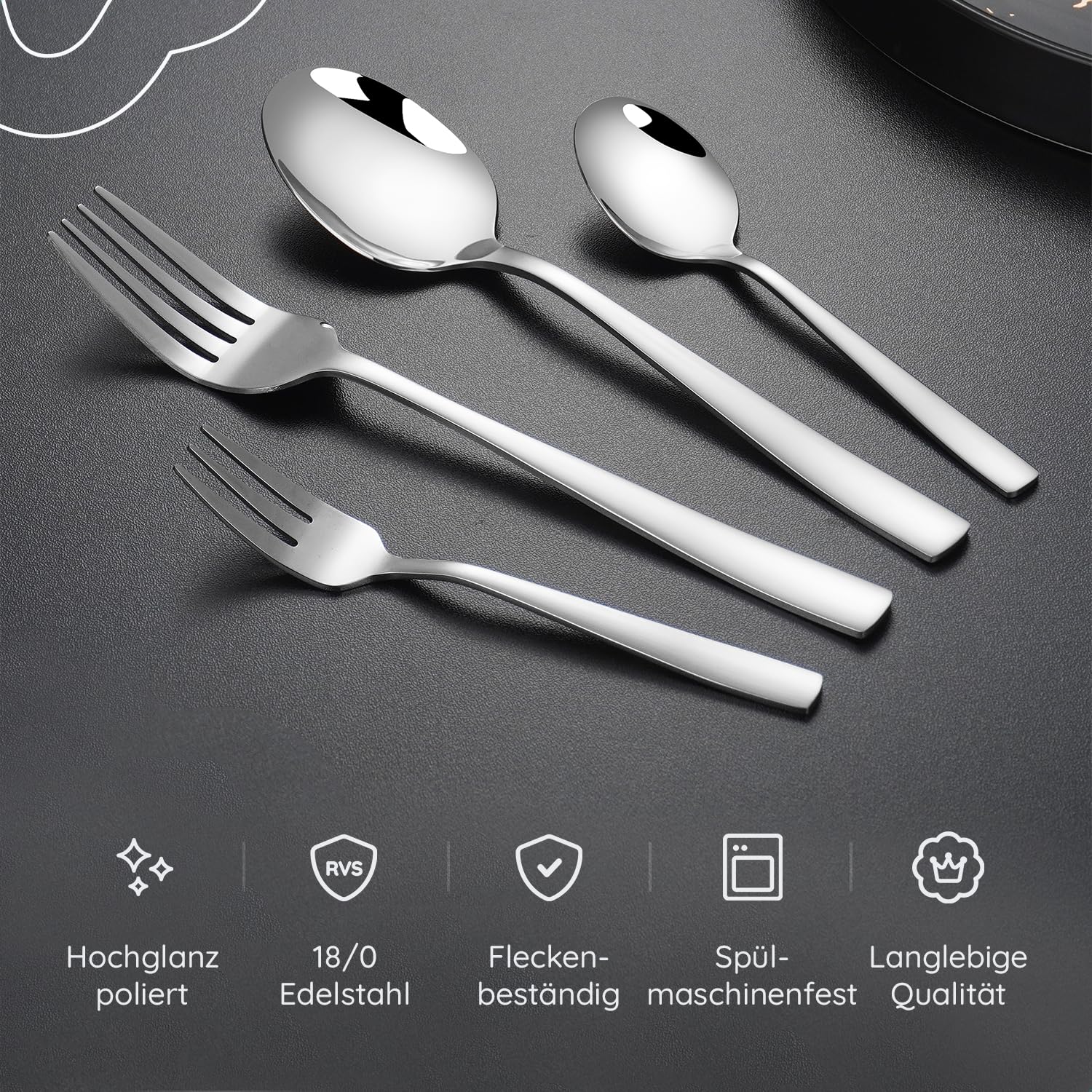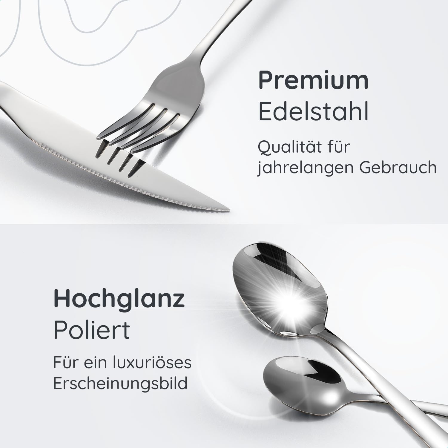 Für 12 Personen: Ergonomisch geformtes Besteck für stilvolles Essen im Alltag & bei Anlässen