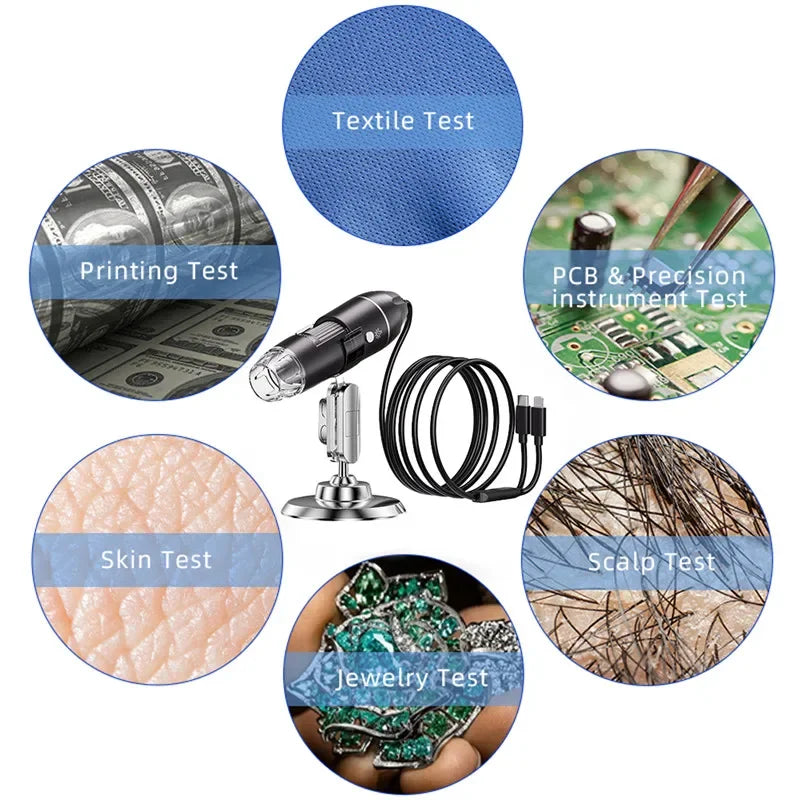 Unser USB Digitalmikroskop bietet eine beeindruckende Vergrößerung von 500X - 1600X und ermöglicht präzises Arbeiten bei einer Vielzahl von Anwendungen.