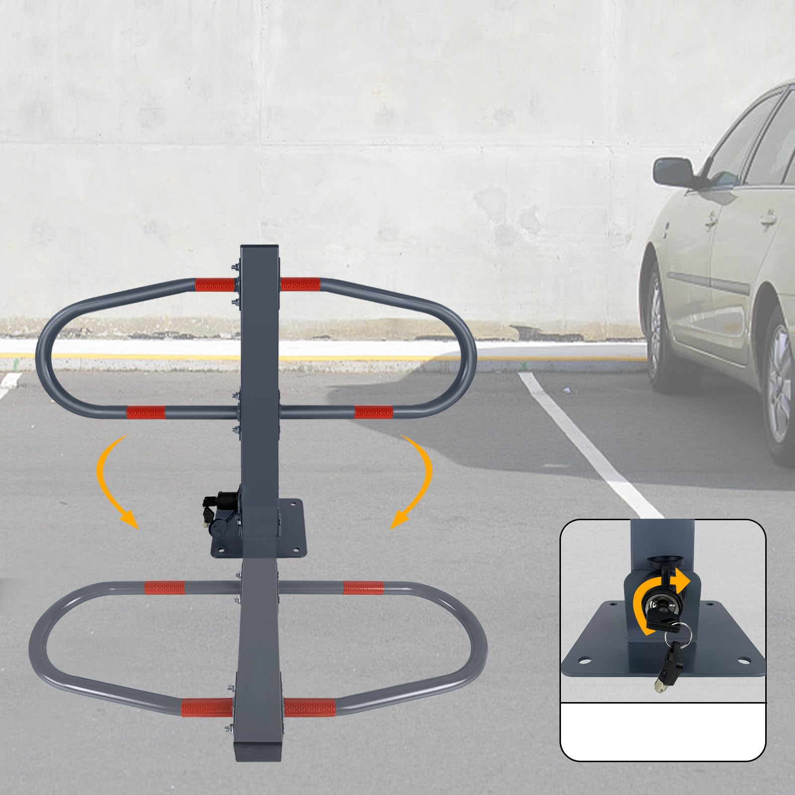 FIVMEN Verzinktes Parkplatzsperre | Klappbar mit Schlüsseln und Reflektierende Aufkleber