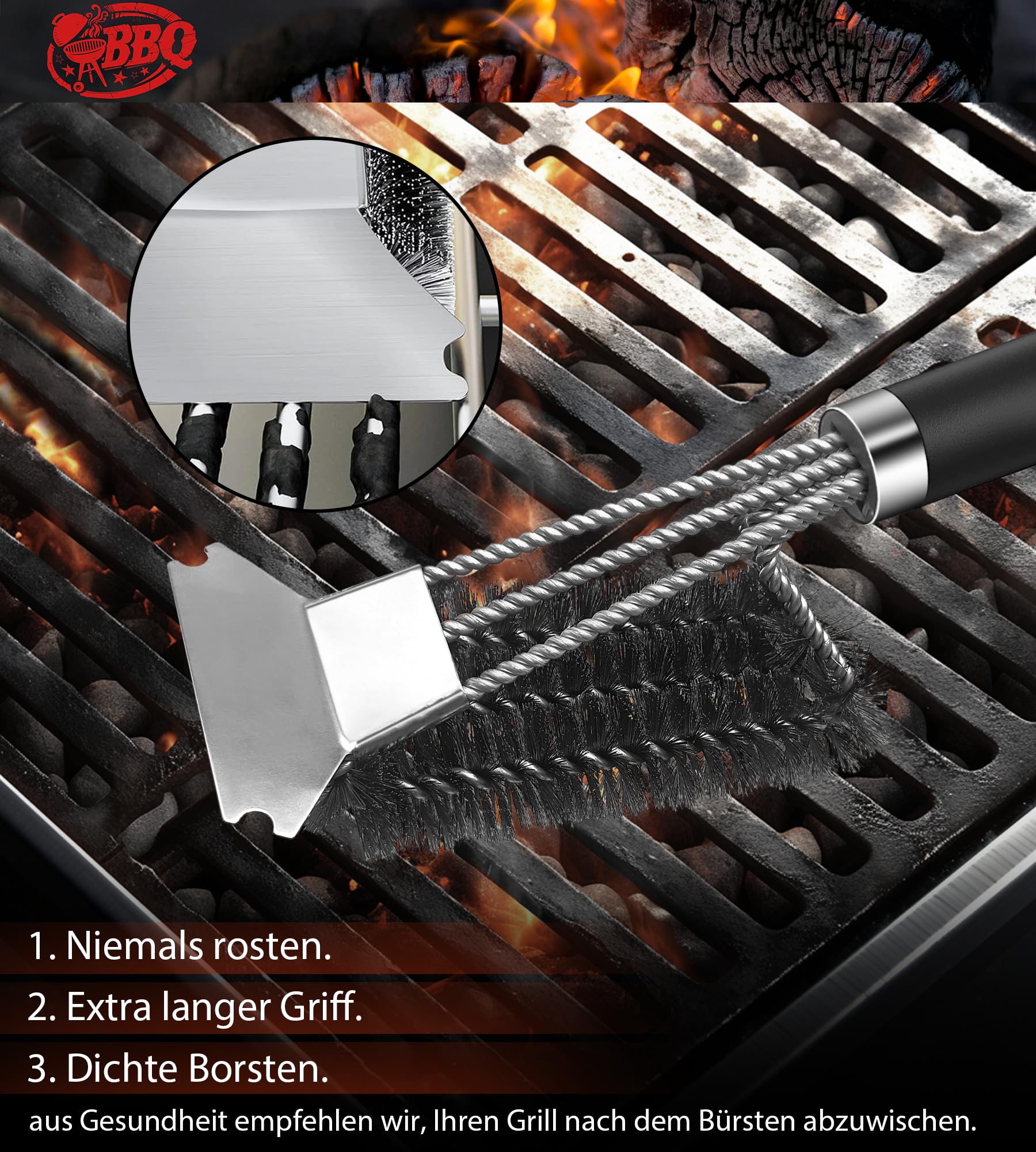 • 【MEHR ALS 5X SCHNELLERE REINIGUNG】 - Dreimal mehr Borsten als die herkömmliche Bürste, aber auch ziemlich scharf und stark und mit ausreichend seitlichem Flex. Kann mehr Bereiche Ihres Grills gleichzeitig erreichen und die Munition leicht von Kanten und Ecken entfernen. 5x schnellere Reinigung als gewöhnliche Grillbürste und erledigen Sie Ihre Arbeit in Sekunden.