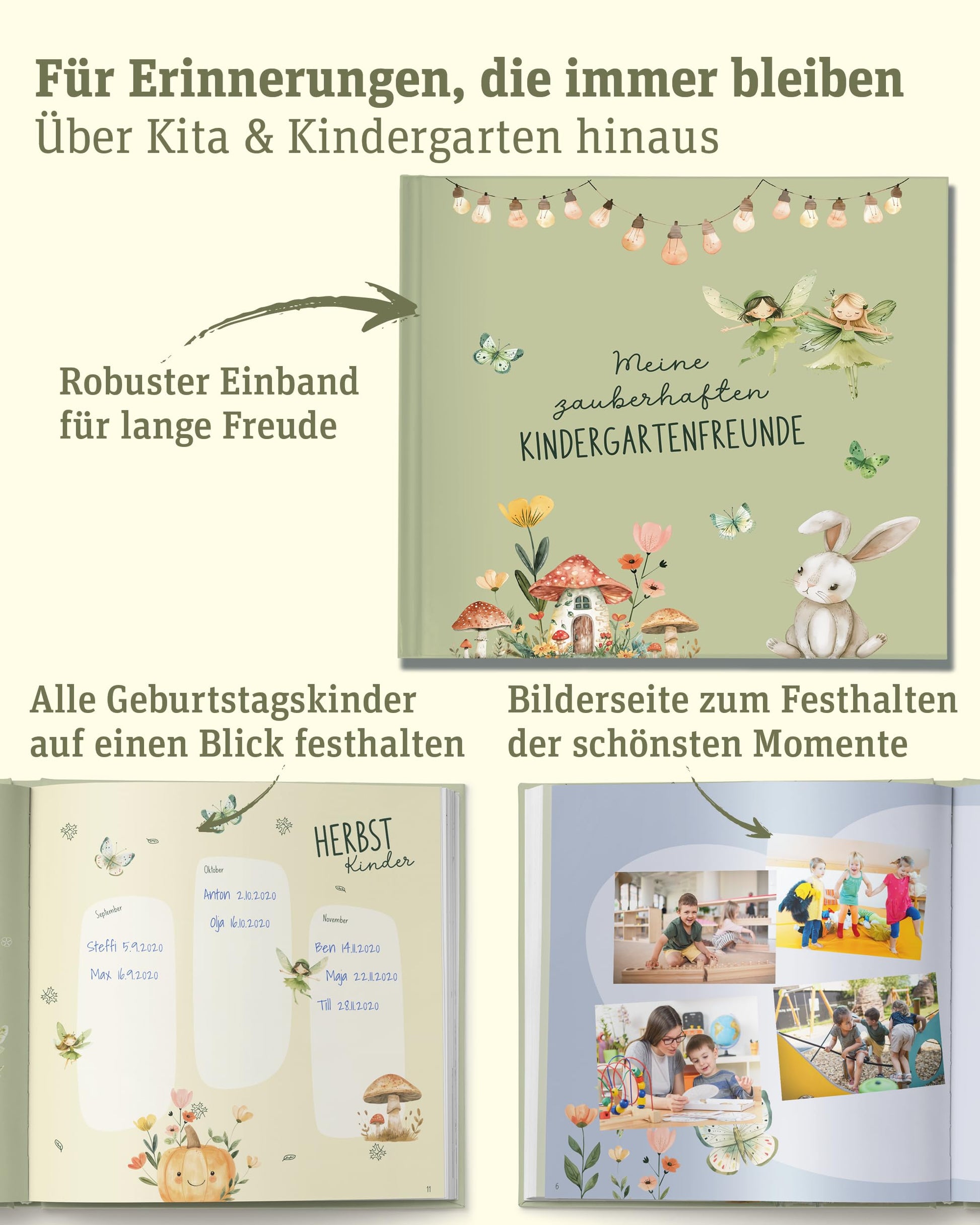 Für Freundschaften, die bleiben: Mit Kontaktdatenfeldern und dicken Seiten, die nicht durchdrücken, sorgt das Buch dafür, dass Freundschaften auch über die Kita hinaus gepflegt werden können.