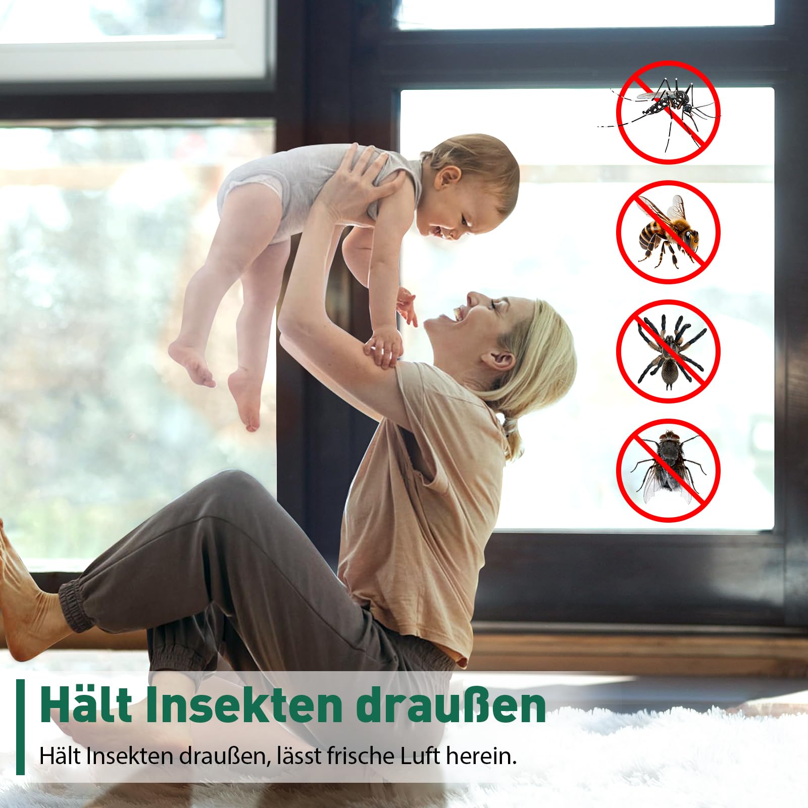 Sofortige Installation: Kein Bohren oder Schrauben erforderlich! Das Fliegengitter lässt sich problemlos montieren, ohne die Fensterstruktur zu beschädigen. Es ist rückstandslos entfernbar, wenn nicht mehr benötigt oder beim Umzug.
