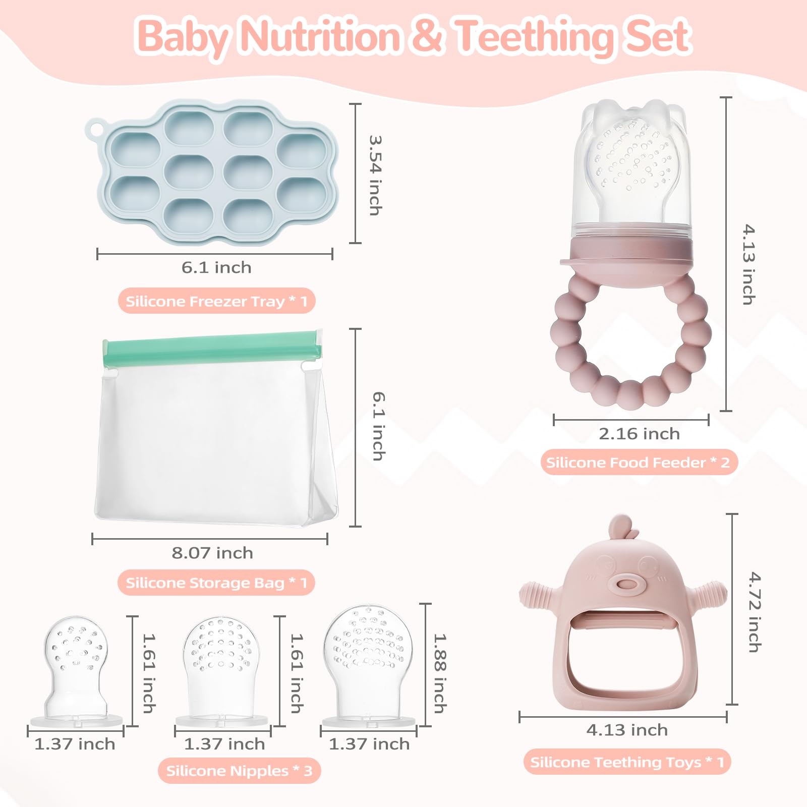 Komplettset für den Beikoststart: Enthält 2 Fruchtsauger (Blau & Rosa) mit 3 austauschbaren Silikonsaugern, ein Gefrierfach mit Deckel, ein Zahnspielzeug aus Silikon und eine Aufbewahrungstasche.