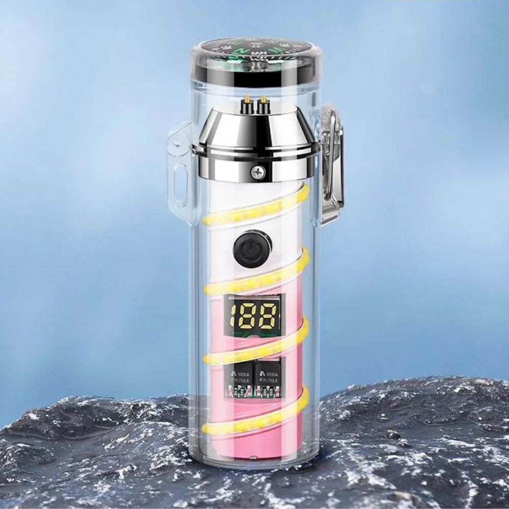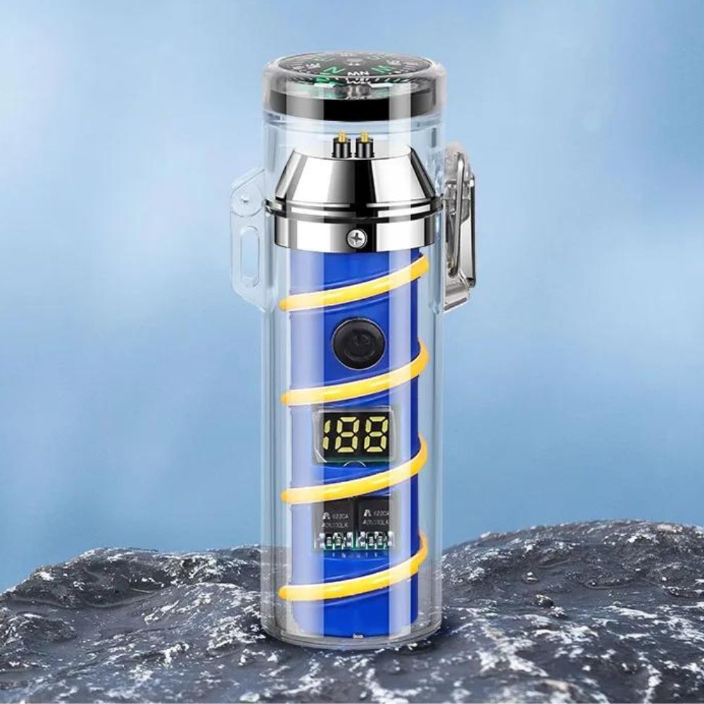 USB-Wiederaufladbares Feuerzeug mit LED-Taschenlampe, Kompass und Winddichtem Lichtbogen